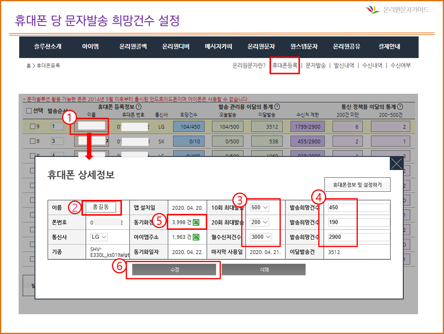 문자 [온리원문자] 발송건수 및 수신처수 직접 설정 2020-04-22 46462